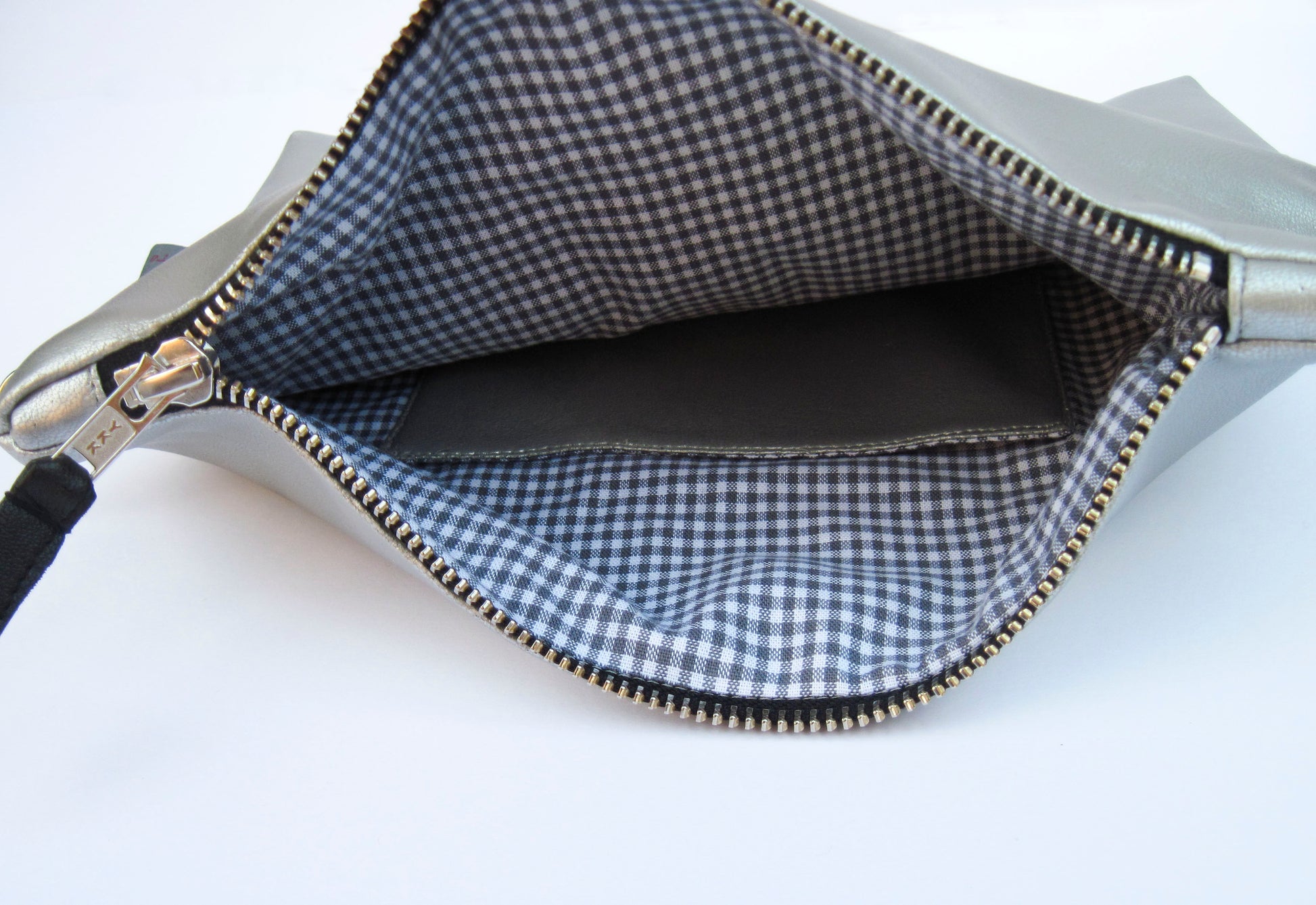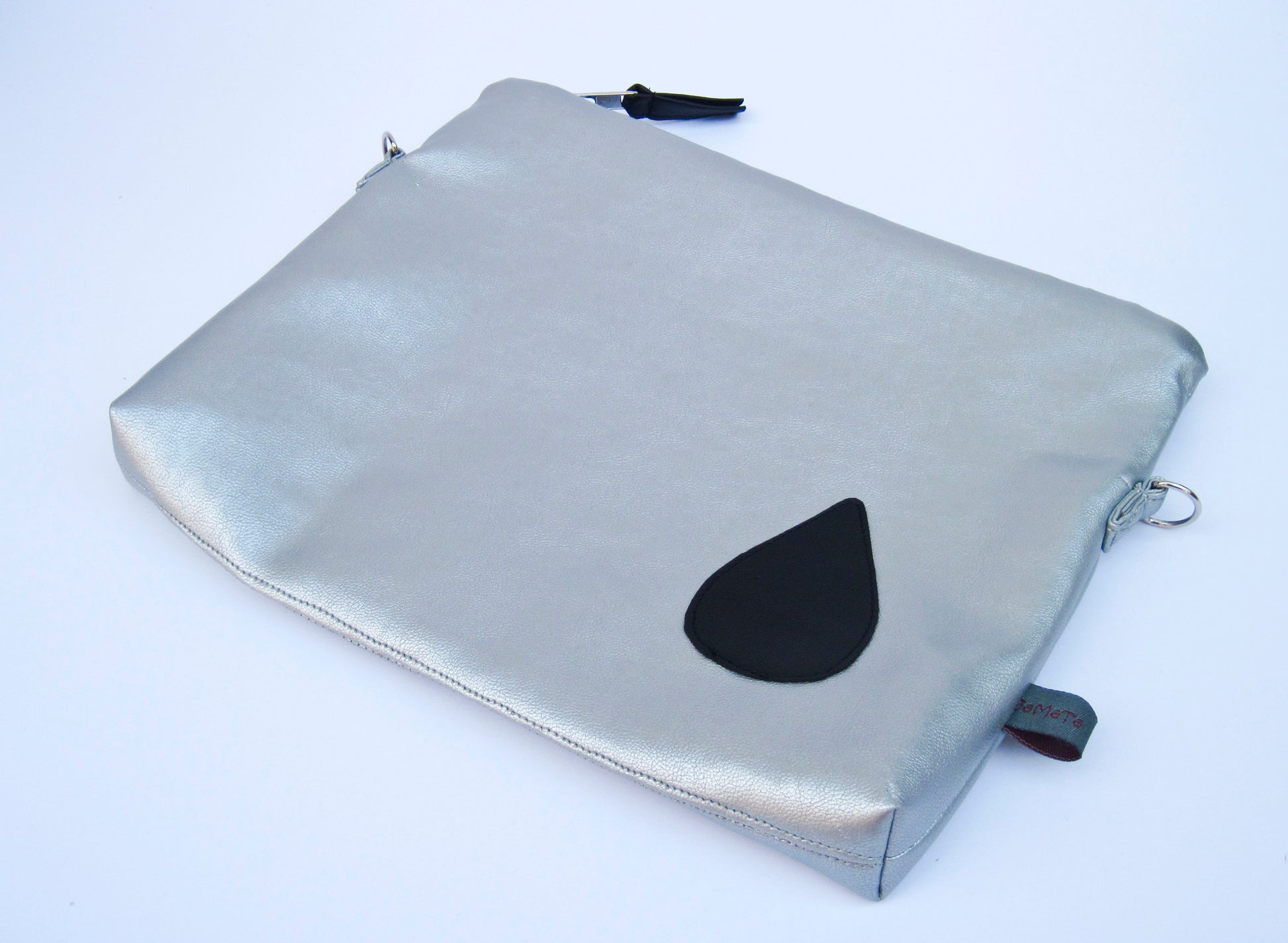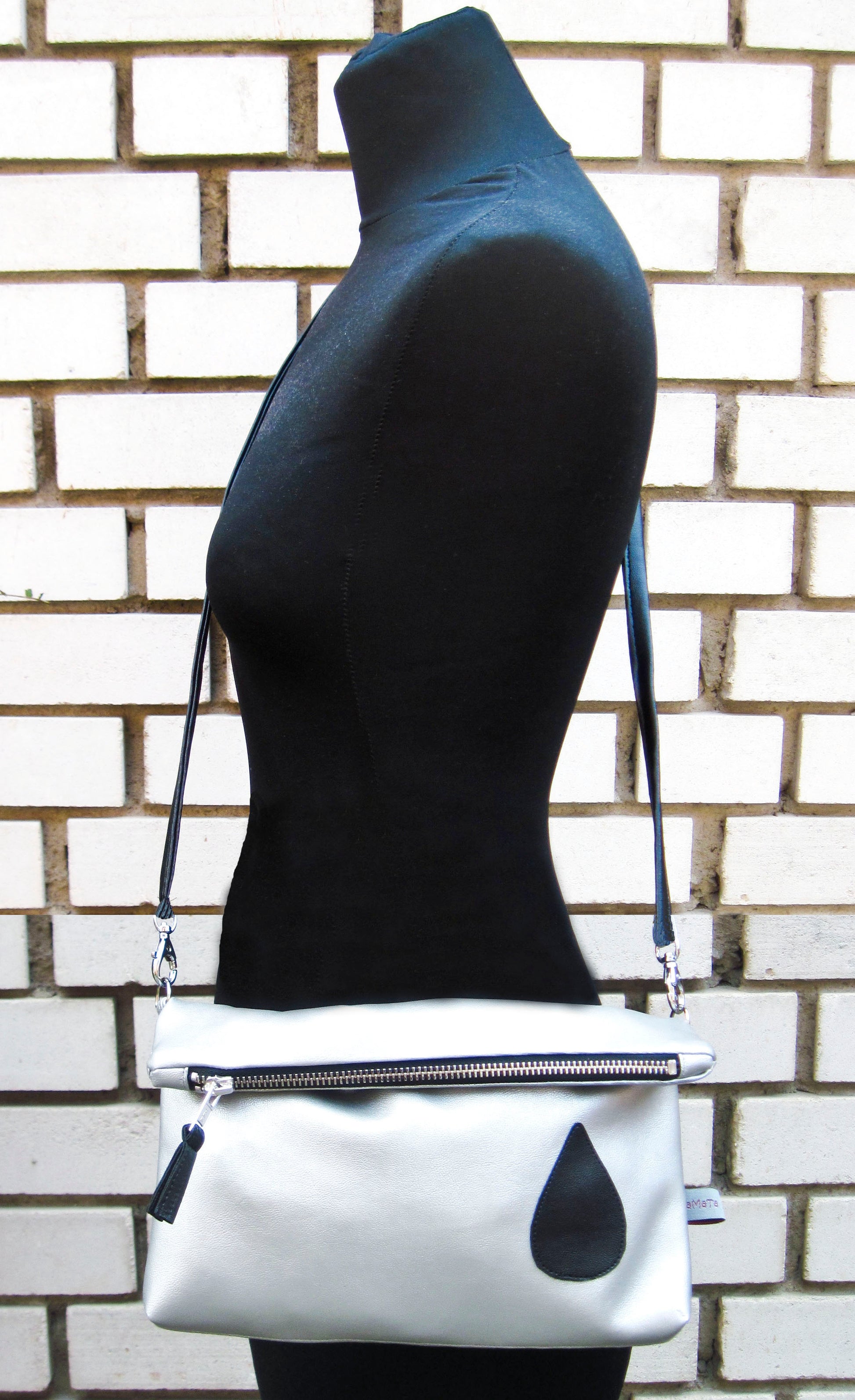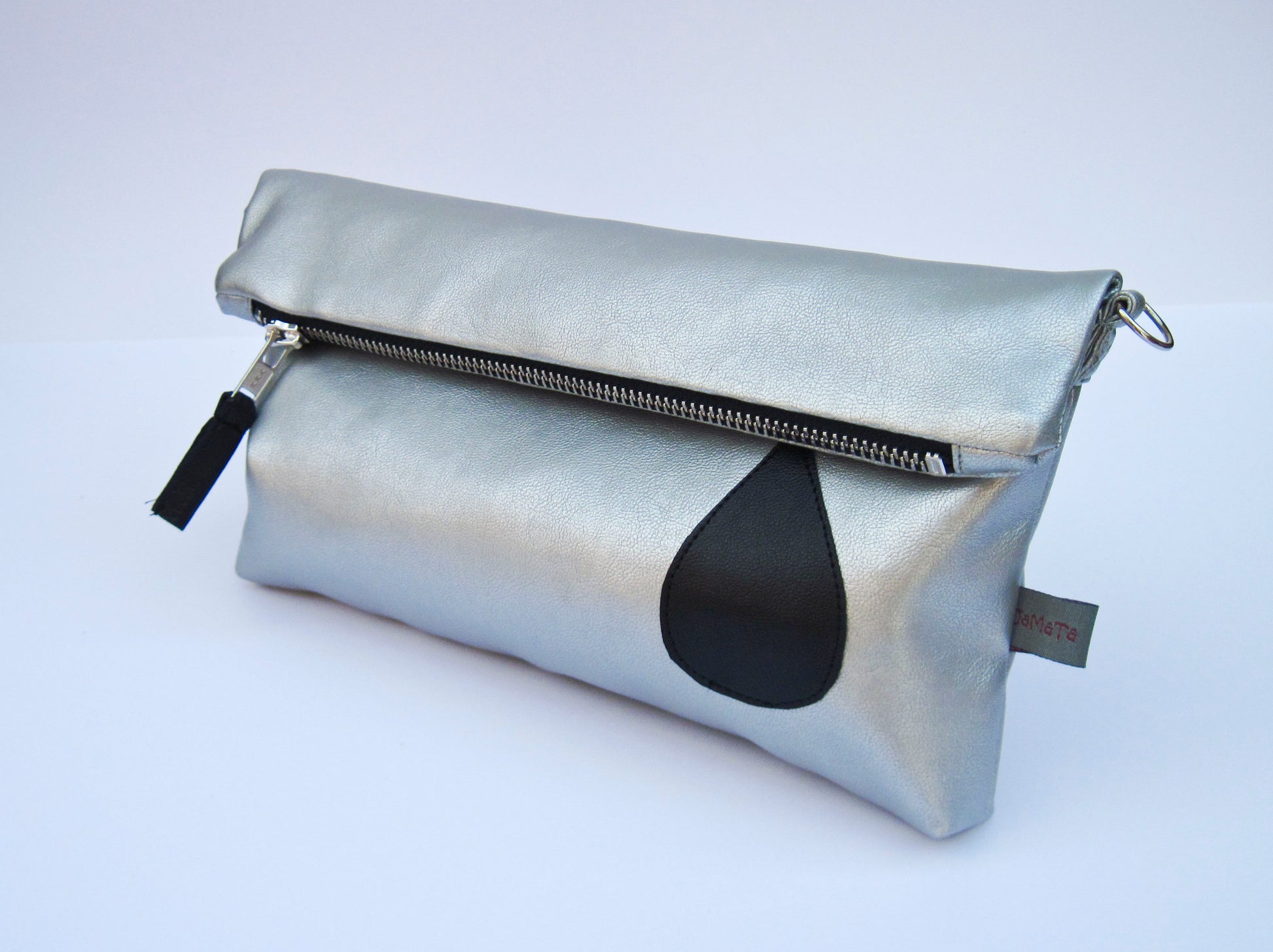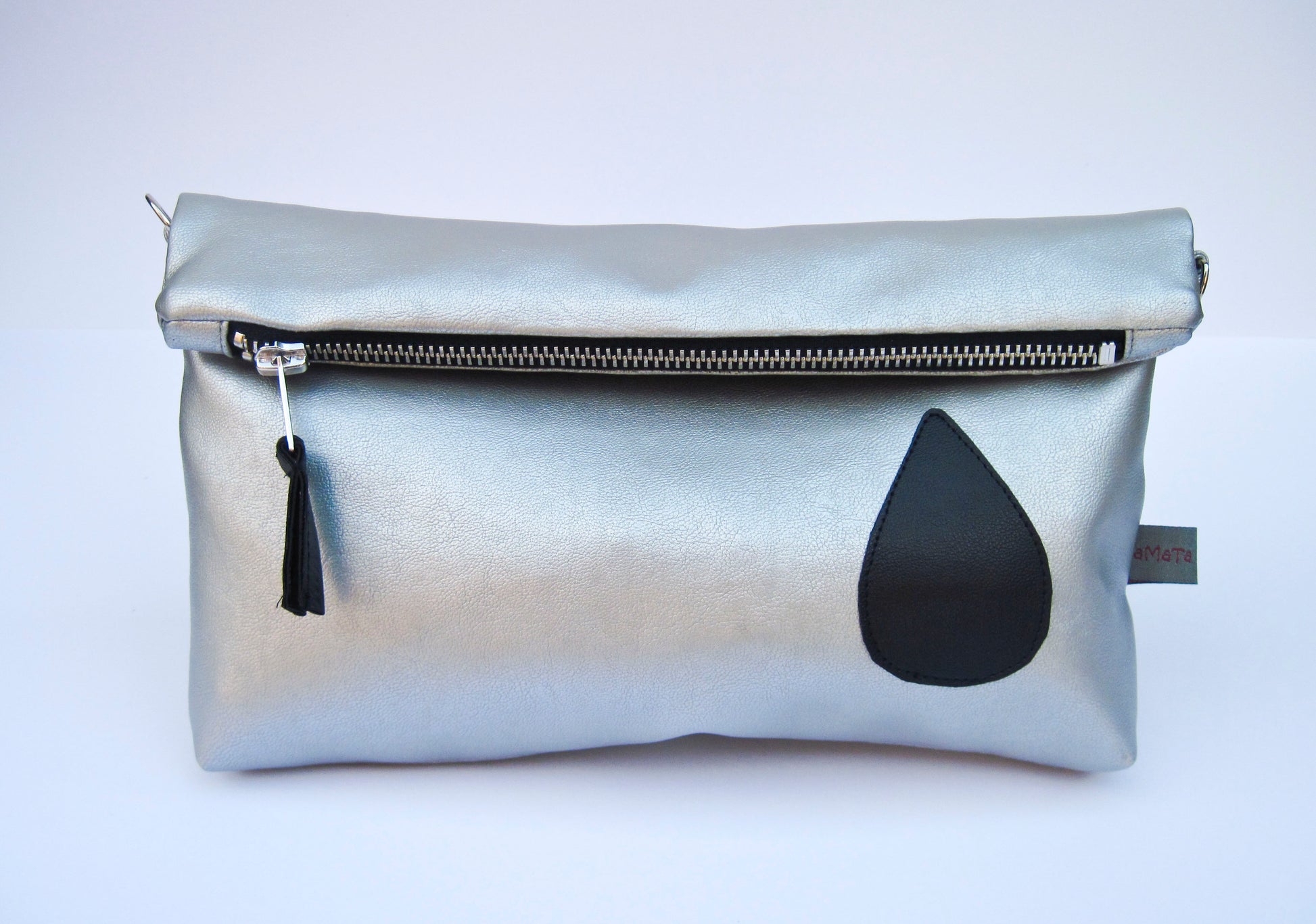 2 in 1: Clutch und Umhängetasche "Tropfen silber"