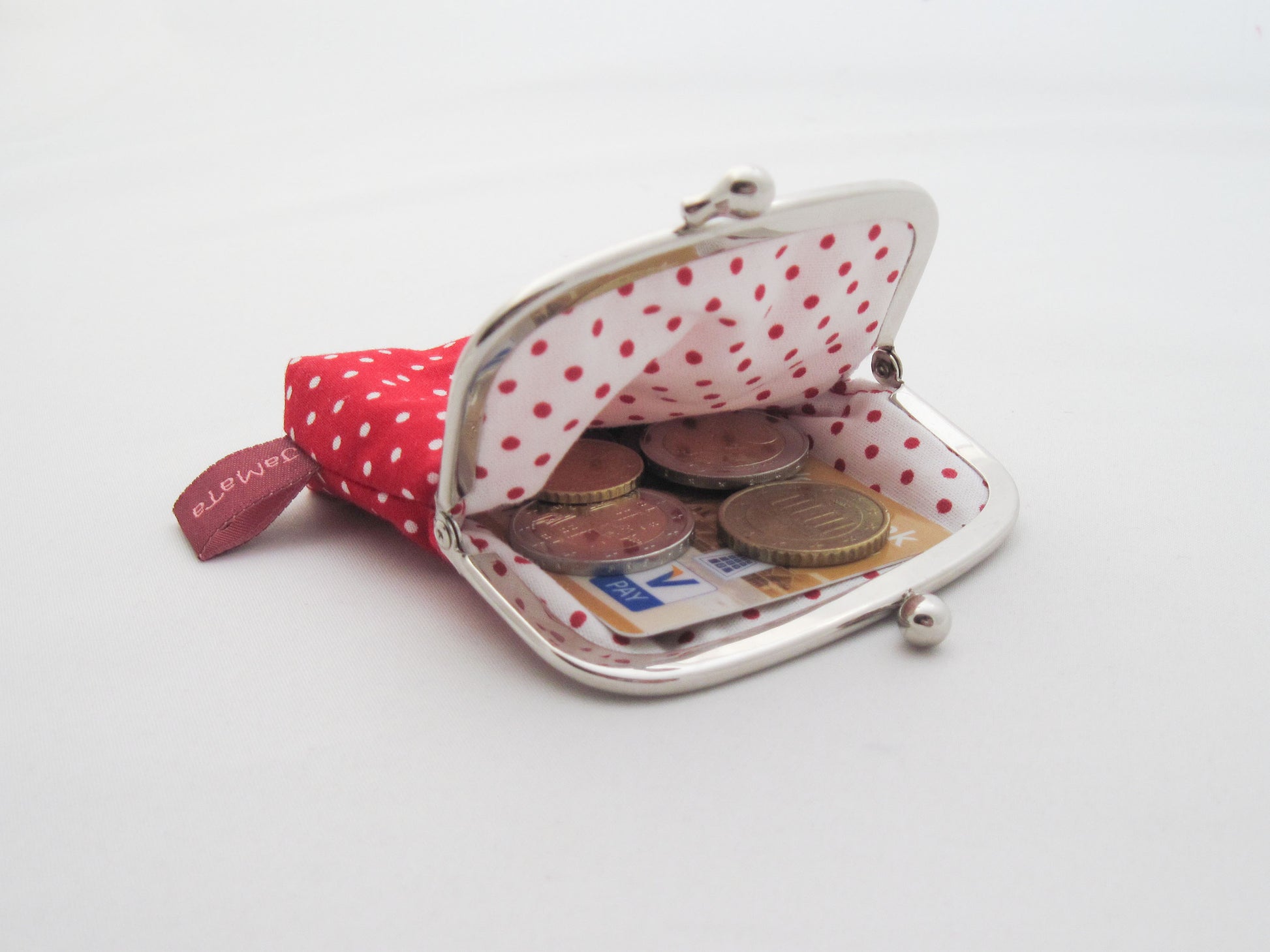 Süßes Portemonnaie mit silbernem Bügelverschluß.